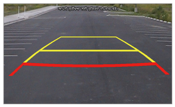 - ਸਕ੍ਰੀਨ ‘ਤੇ ਰਿਅਰ ਵਿਊ ਦਿਖਾਈ ਦਿੰਦਾ ਹੈ। ਸਕ੍ਰੀਨ ‘ਤੇ, ਇਹ ਦਰਸਾਉਣ ਲਈ