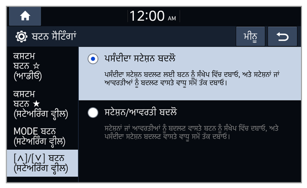 ਹੋਮ ਸਕ੍ਰੀਨ ‘ਤੇ, ਸਾਰੇ ਮੀਨੂ > ਸੈਟਿੰਗਾਂ > ਬਟਨ ਦਬਾਓ ਅਤੇ ਬਦਲਣ ਲਈ ਕਿਸੇ ਵਿਕਲਪ ਦੀ ਚੋਣ ਕਰੋ।