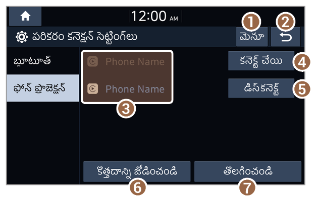 మీ భద్రతా కారణాల దృష్ట్యా, ఫోన్ ప్రొజెక్షన్ సెట్టింగ్లను మార్చడానికి మీ వాహనాన్ని సురక్షిత ప్రదేశంలో పార్క్ చేయండి.