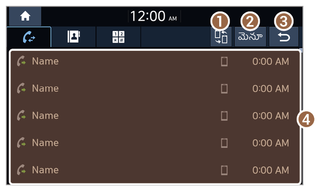 - Bluetooth ఫోన్ స్క్రీన్పై,