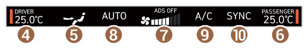 - SYNC 모드 실행 표시. SYNC 모드를 실행하면 설정한 온도가 운전석과 동승석에 동일하게 적용됩니다.