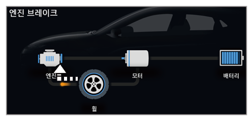 • 감속을 위해 엔진 동력 감소 및 엔진의 감속 에너지로 배터리 충전 중