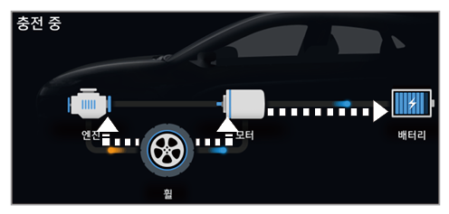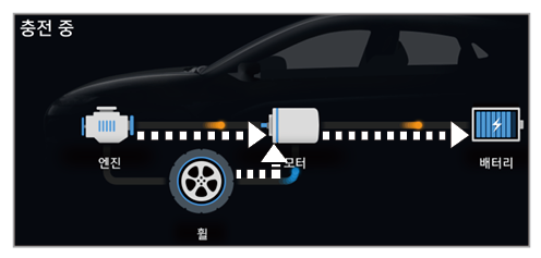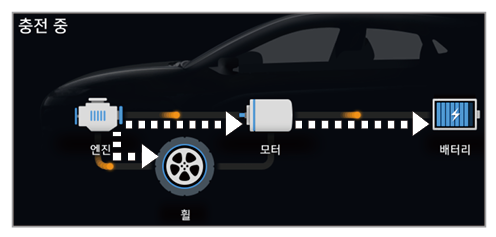 • 엔진 동력으로 주행 및 배터리 충전 중