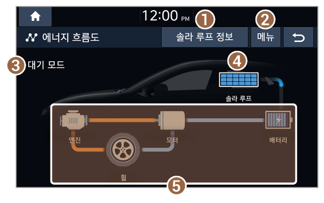 1. 현재 차량의 에너지 전달 상태를 볼 수 있습니다. > '에너지 흐름도 보기(HEV 전용)' 참조