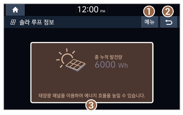 1. 솔라 루프 정보를 확인할 수 있습니다.(사양 적용 시) > '솔라 루프 정보 보기(HEV 전용)(사양 적용 시)' 참조