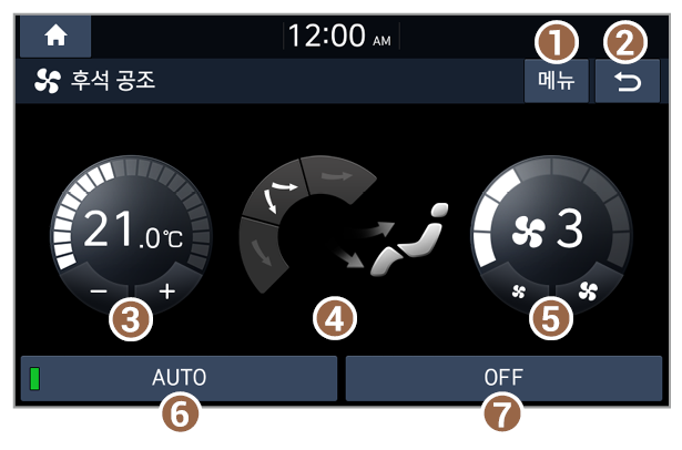 시스템 화면에서 뒷좌석 공조 장치를 조작하고, 설정 상태를 확인할 수 있습니다.