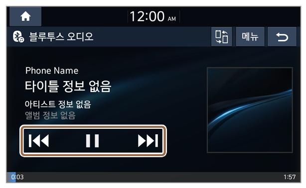 재생 중인 음악을 처음부터 다시 시작하려면 재생이 시작되고 3초가 지난 후에