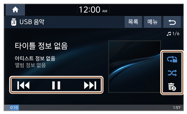 - 랜덤 재생 모드를 켜거나 끕니다.