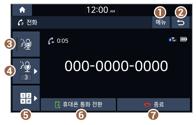 블루투스 전화로 통화 중에는 라디오, 미디어, 설정 화면 등 다른 화면으로 이동할 수 없습니다.