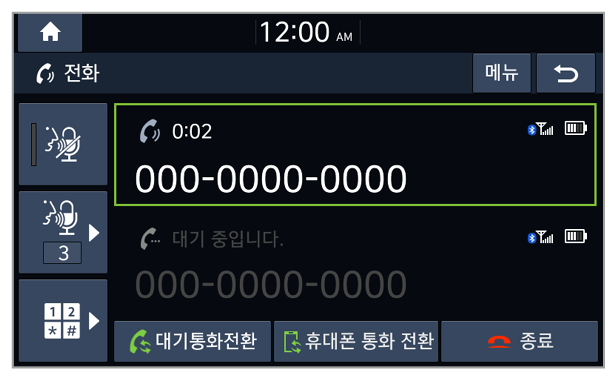통화 대기를 지원하는 휴대 전화를 연결해 사용하는 경우, 통화 중에 새로 걸려온 전화를 받을 수 있습니다. 기존 통화는 대기 상태로 전환됩니다.