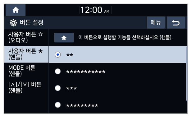 스티어링 휠의 사용자 버튼을 눌러 실행할 기능을 선택할 수 있습니다.