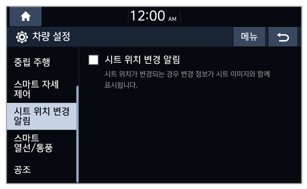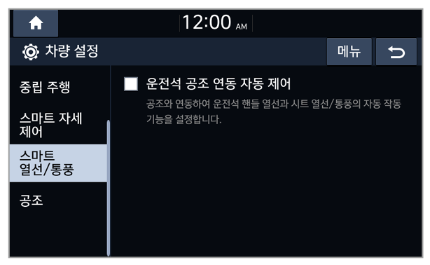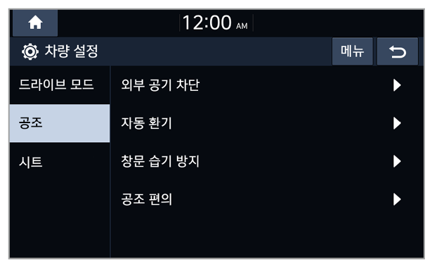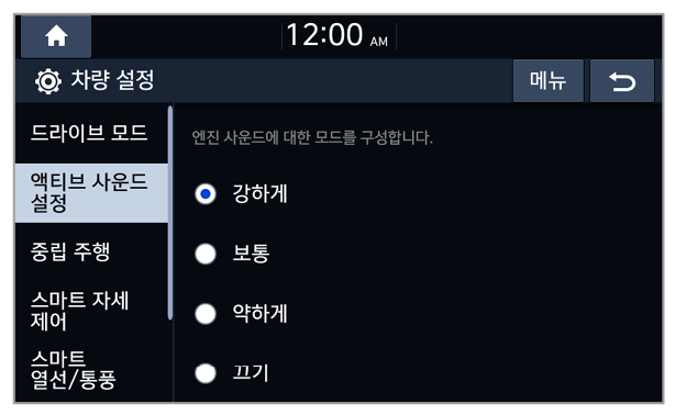 차량의 주행 환경과 관련된 설정을 변경할 수 있습니다.