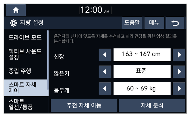 - SMART: 운전 성향에 따라 자동으로 서스펜션을 조정합니다.