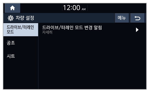 - 자세히: 드라이브 모드가 변경될 때 변경 정보가 차량 이미지와 함께 자세히 표시됩니다.