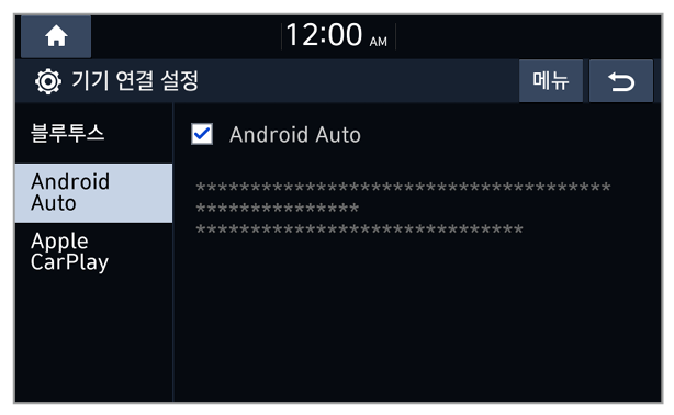 Android 스마트폰과 시스템을 연동하기 위해 Android Auto 기능을 활성화할 수 있습니다.