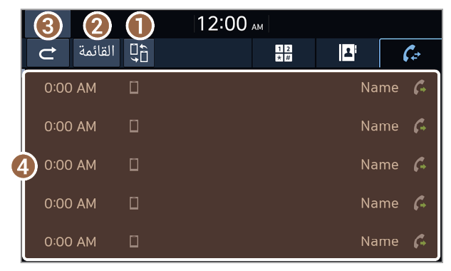 - يؤدي الضغط على هذا الزر إلى إدخال آخر رقم هاتف تم الاتصال به مؤخرًا في حقل الإدخال.