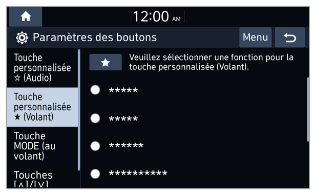 Vous pouvez attribuer une fonction au Bouton personnalisé de votre volant.
