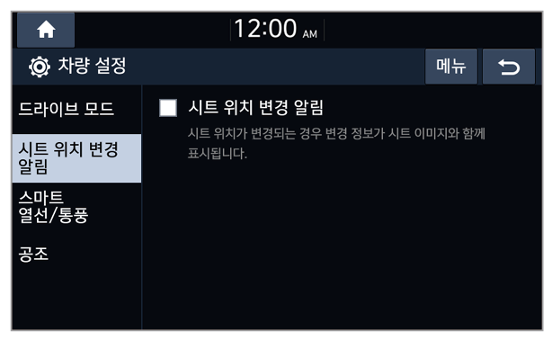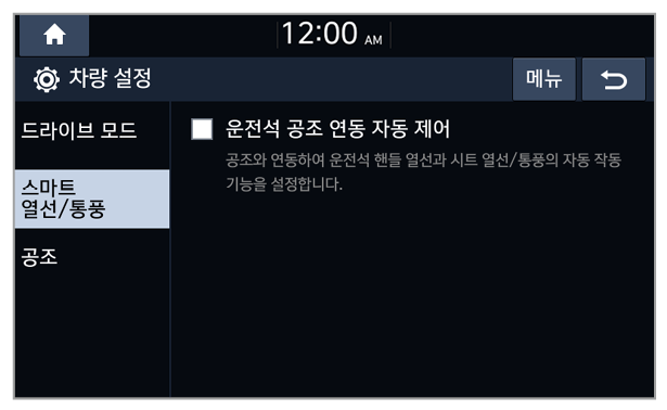 차량의 주행 환경과 관련된 설정을 변경할 수 있습니다.