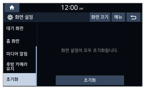 화면 밝기 설정 상태를 모두 초기 상태로 되돌리려면 초기화 또는 초기값을 누르세요.
