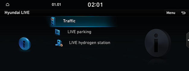 - A la pantalla d’inici, premeu [Hyundai LIVE] > [Traffic].