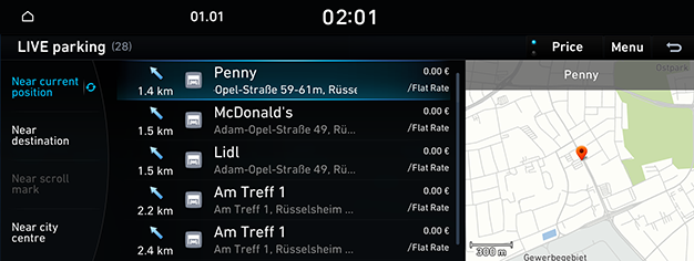 - A la pantalla d’inici, premeu [Hyundai LIVE] > [LIVE parking].