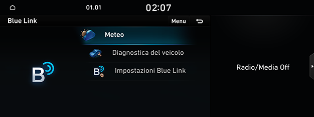 - [Impostazioni Blue Link]: Controlla lo stato del servizio e le informazioni sul modem.