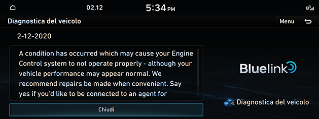 - Premere [Blue Link] > [Diagnostica del veicolo] nella schermata Home.