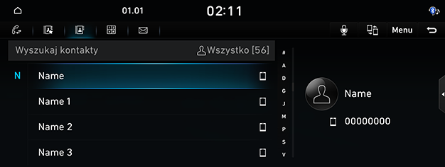 - Aby wykonać połączenie, naciśnij żądany kontakt.