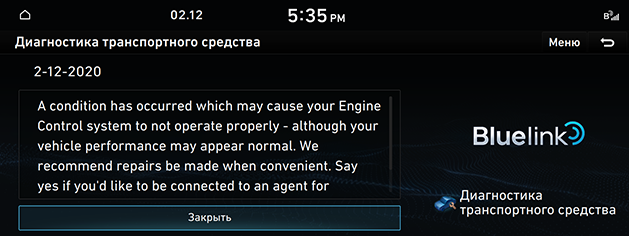 - [Диагностика транспортного средства]: показывает результаты диагностики автомобиля.