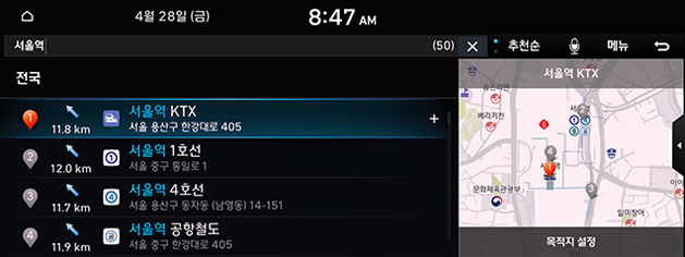 - 이후 동작은 "통합 검색으로 목적지 설정"의 4~6단계를 참고하세요.