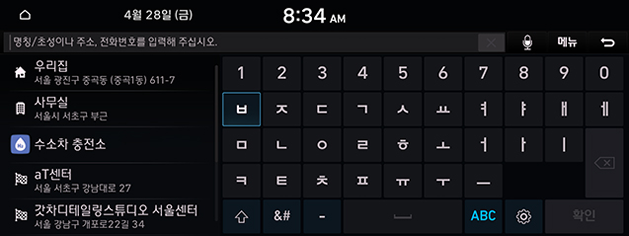 - [도로명 주소]: 도로명 주소를 통해 목적지를 설정합니다.