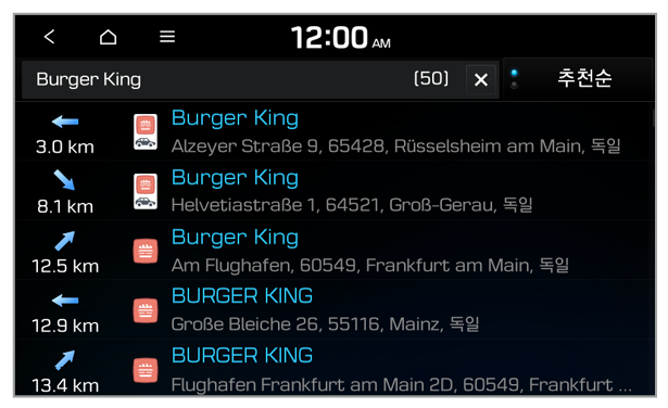 을 누르세요. - 경로 안내 없이 고속도로를 주행 중일 때에는 상세 정보 목록에서 전방의 IC, JC, 휴게소 정보를 최대 30개까지 볼 수 있습니다.