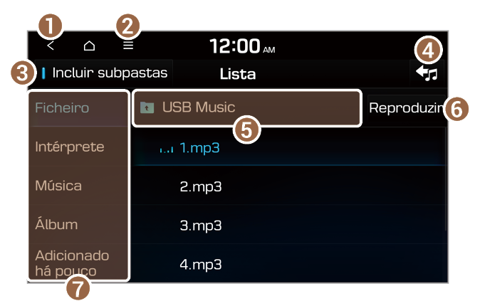 - A ordem das canções apresentadas ou reproduzidas no sistema pode ser diferente da ordem das canções armazenadas no dispositivo.