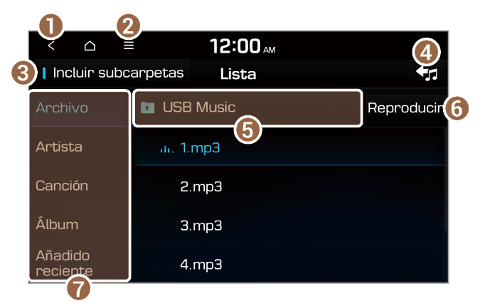 - El orden de las canciones mostradas o reproducidas en el sistema podría diferir del orden de las canciones almacenadas en el dispositivo.
