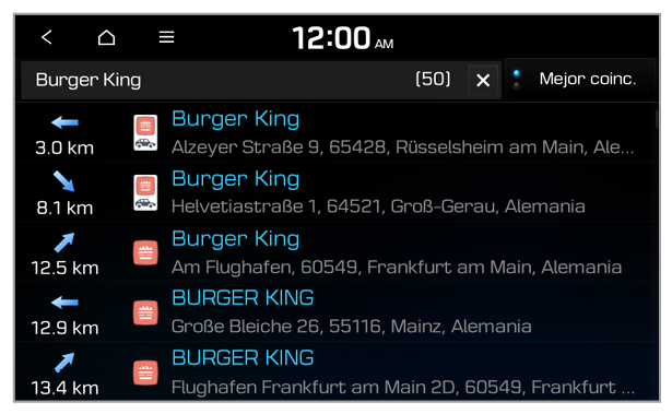 . - Al conducir por una autopista sin la guía de navegación, puede visualizar información sobre un máximo de 30 cruces, salidas y áreas de servicio antes de la lista de información detallada.