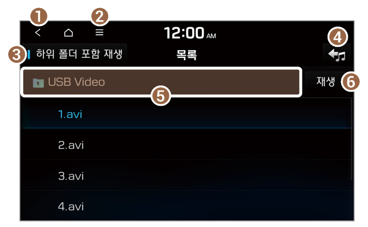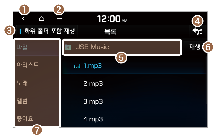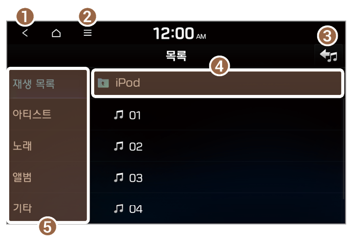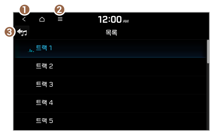 - 현재 곡 이동: 목록에서 이동하며 파일을 검색하는 중 현재 재생 중인 파일이 있는 위치로 복귀할 수 있습니다.