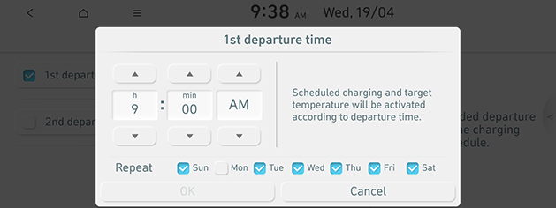 When a cable is connected, the target temperature will be activated according to the departure time.
