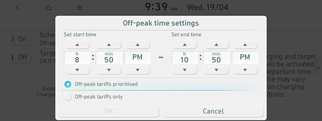 Off-peak tariffs only: Charges only within scheduled charging time.