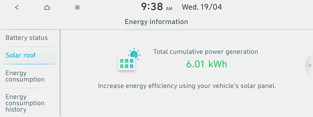 Press EV > Energy information > Energy consumption. Or press EV > [