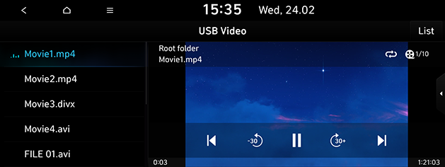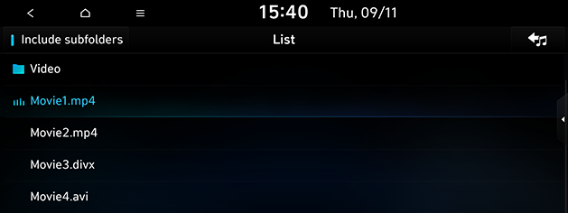 ] > Media sources > USB Video or toggle through MODE button on the steering wheel. -
