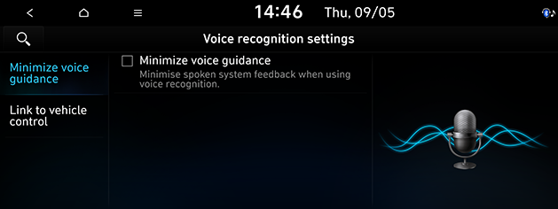 Minimize voice guidance: Minimises spoken system feedback when using voice recognition.