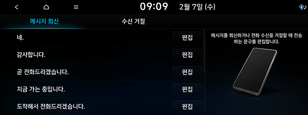 메시지 회신 또는 수신 거절에서 원하는 메시지를 선택할 수 있습니다.