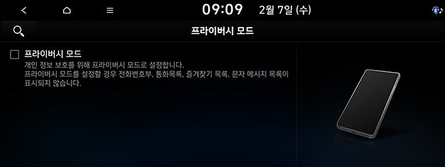 개인 정보를 보호하기 위한 프라이버시 모드를 설정할 수 있습니다. 프라이버시 모드를 설정하면 연락처, 통화 기록, 즐겨찾기, 메시지 등이 표시되지 않습니다.