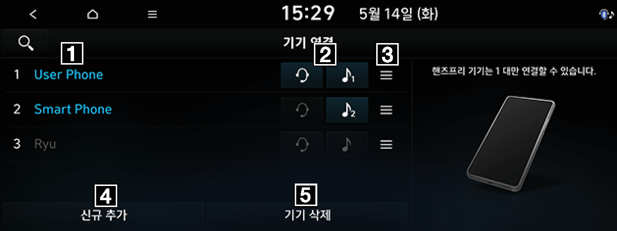 이 메뉴는 블루투스 전화 설정에 대한 설명입니다.