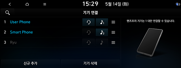 SETUP > 기기 연결 > 시스템 블루투스 정보 > 차량 이름을 누르세요.