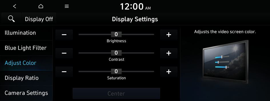 and enter a keyword to search for a setting item.You can set the system to automatically adjust the display brightness depending on the cluster illumination. You can also set the level of display brightness to use while using the daytime or night mode.