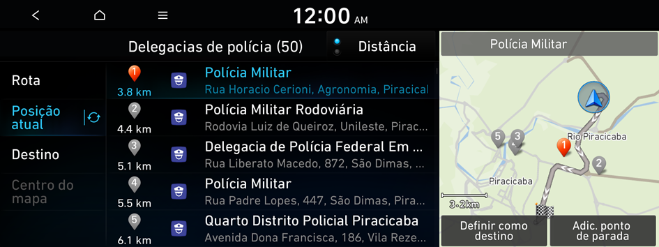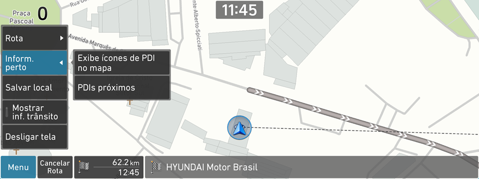 ▶ Inform. perto ▶ Exibe ícones de PDI no mapa.
