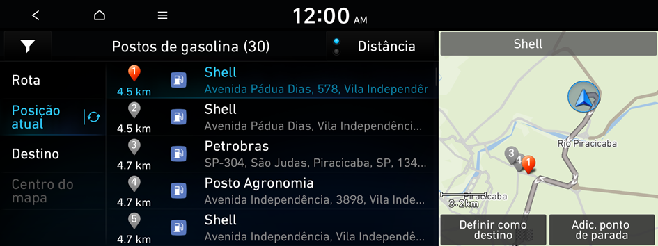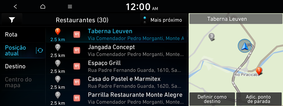Você pode definir um destino por meio da pesquisa dos pontos de interesse próximos pela categoria.