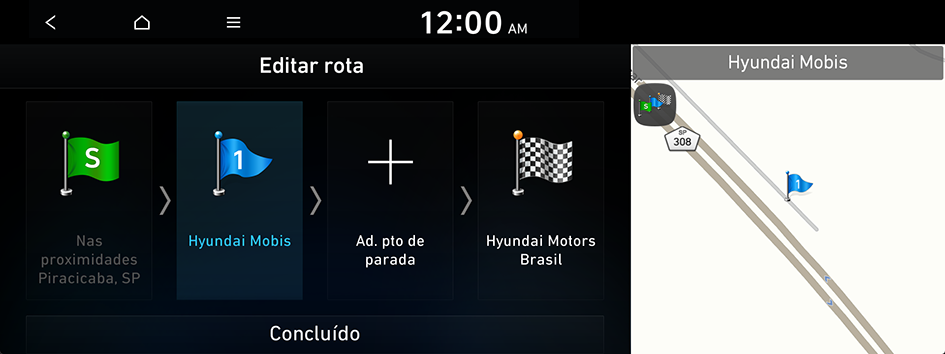Você pode editar os pontos de rota no caminho para o destino. Você pode adicionar até dois pontos de rota.