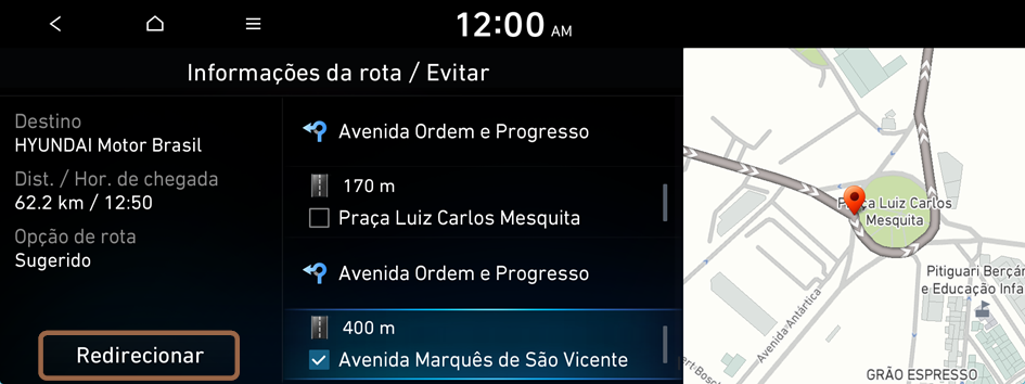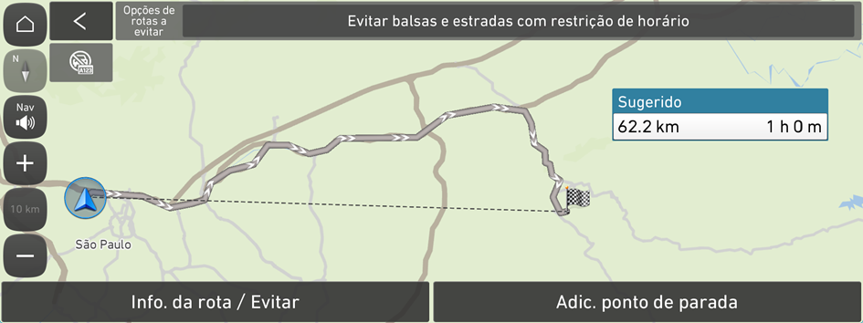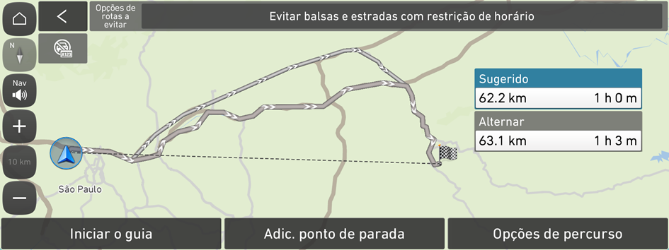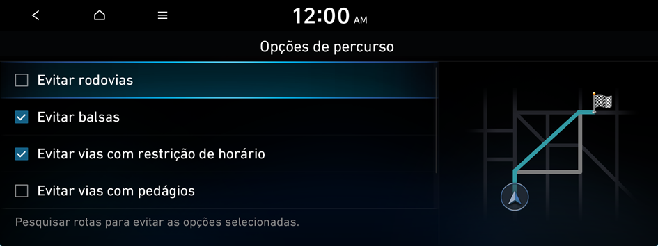 É possível alterar a opção de pesquisa de rota.